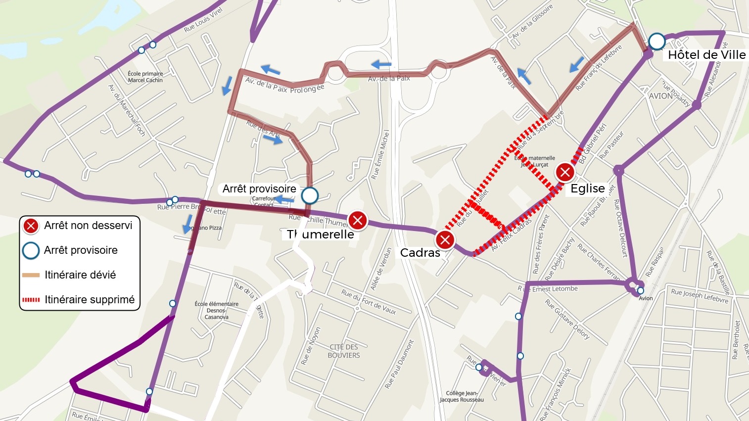 | L'arrêt Eugène Thomas est reporté à l'arrêt Centre des Impôts | |
