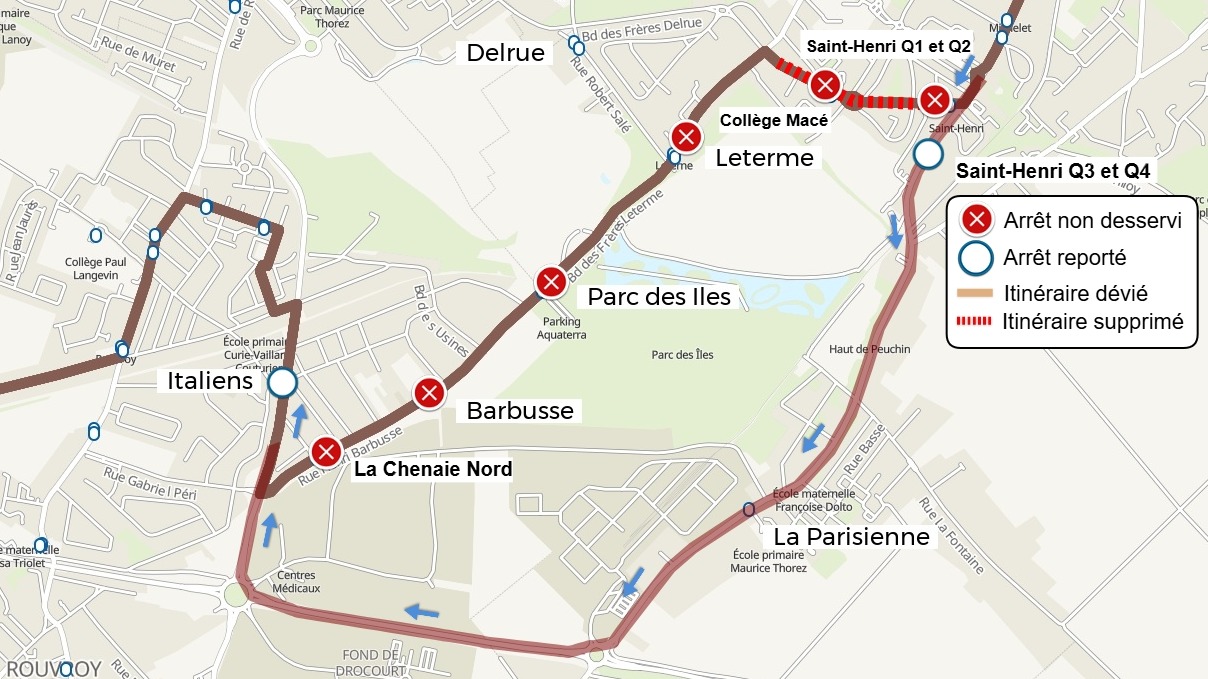 | L'arrêt ROUVROY - Bernard Omer est reporté à l'arrêt ROUVROY - Italiens | |
