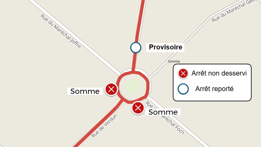 | L'arrêt Somme est déplacé à l'arrêt PROVISOIRE Place de la Marne | |