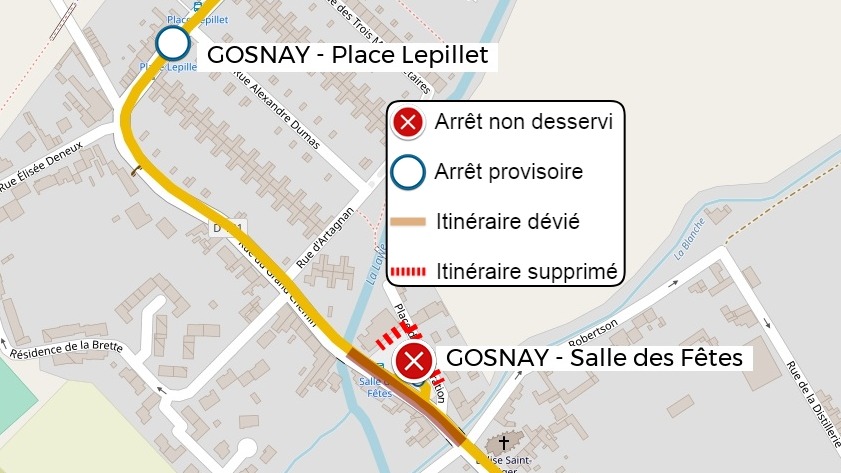 | L'arrêt BRUAY-LA-BUISSIERE - Mendès France est déplacé arrêt non impacté par la déviation |