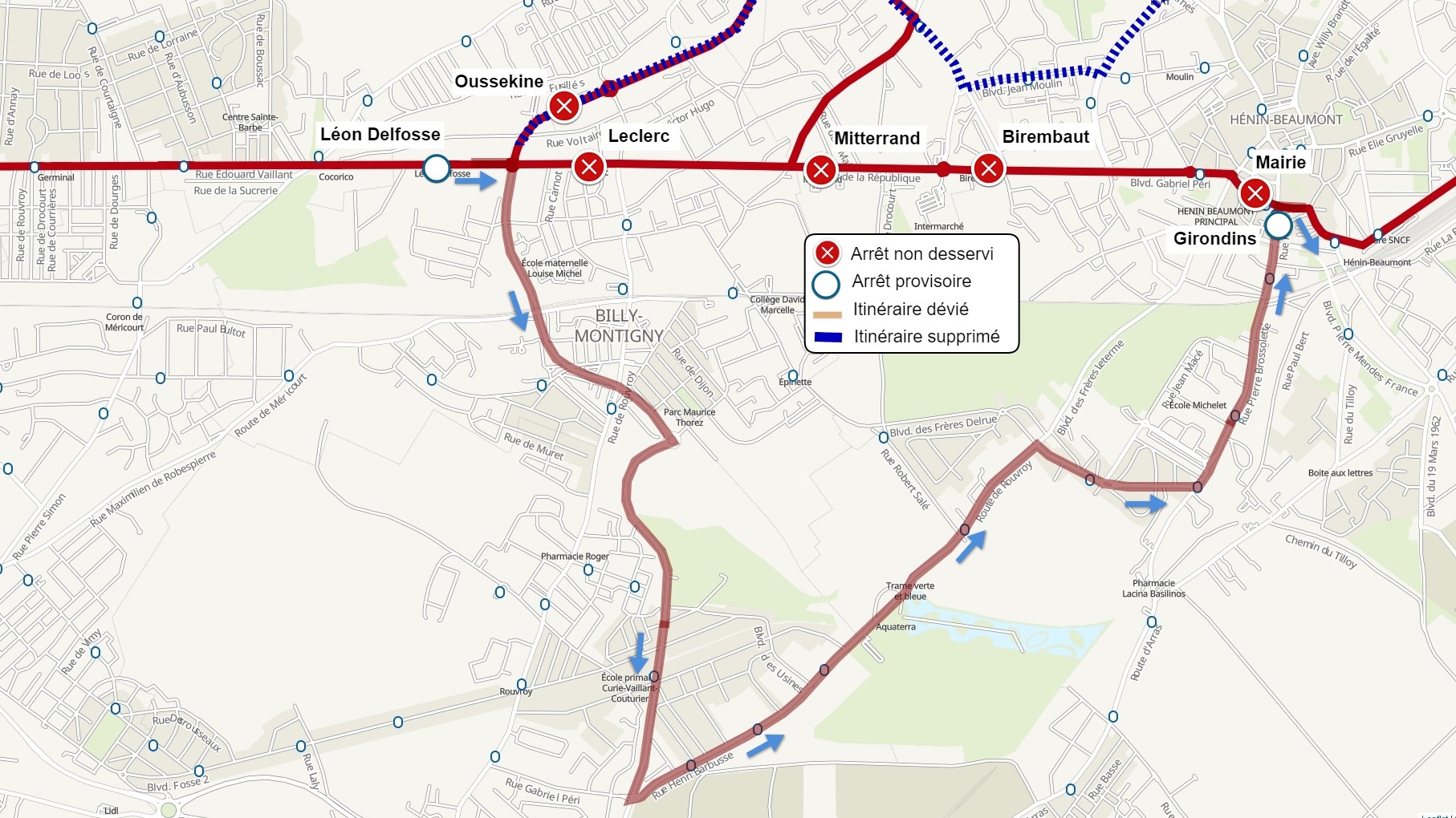 1 L'arrêt BILLY-MONTIGNY - Leclerc est reporté à l'arrêt BILLY-MONTIGNY - Léon Delfosse