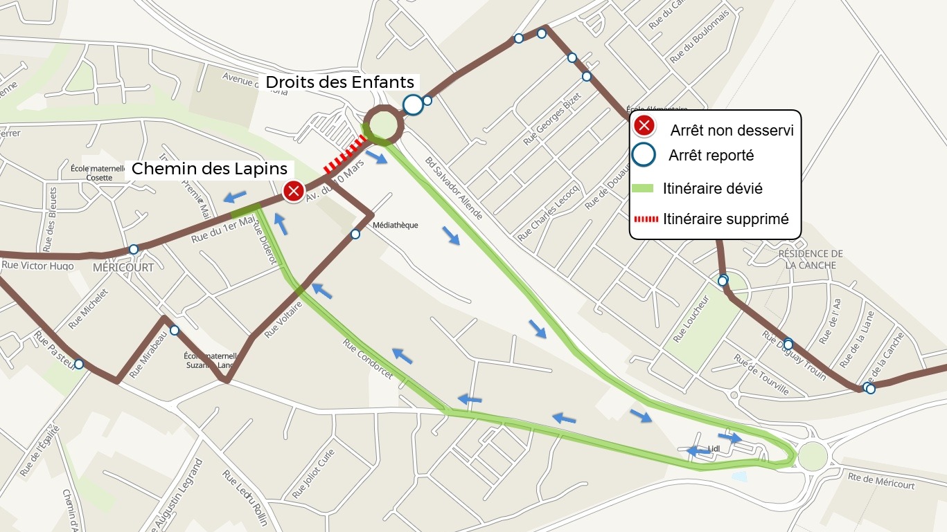 19 L'arrêt Chemin des Lapins est reporté à l'arrêt Droits des Enfants