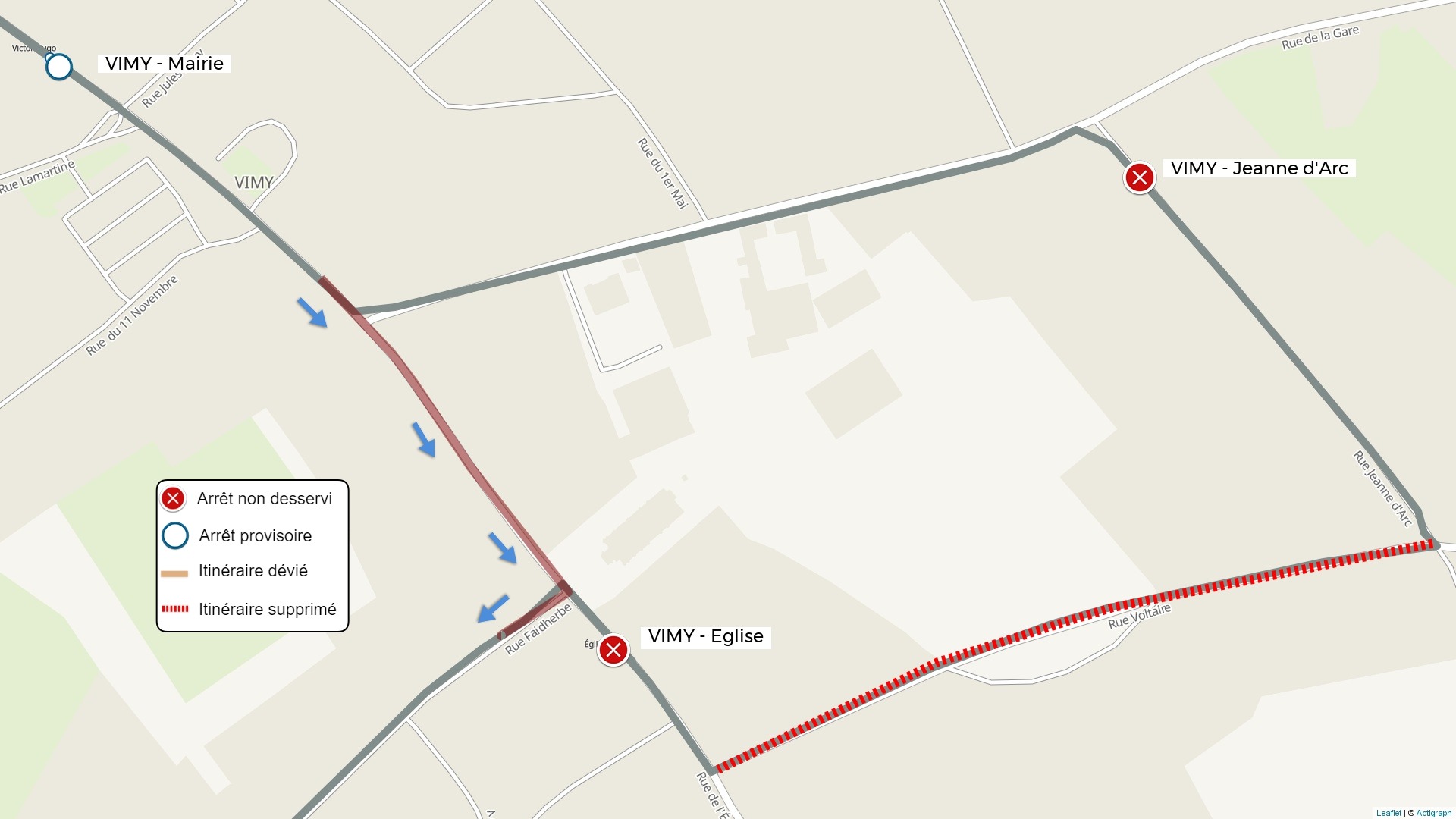 | L'arrêt Deruelle est reporté à l'arrêt Mairie | |
