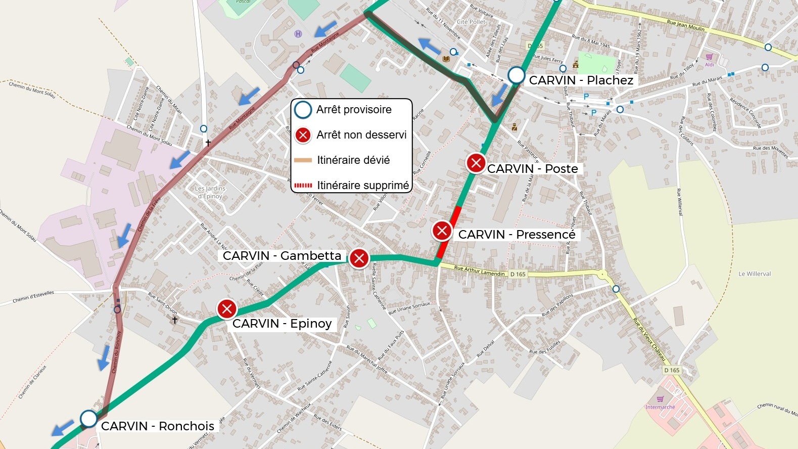 L'arrêt CARVIN - Gambetta est reporté à l'arrêt CARVIN - Plachez |