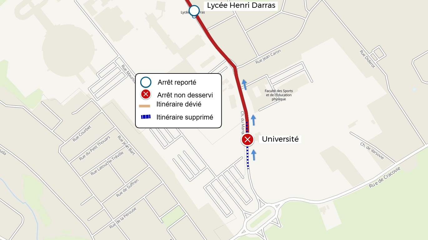 | L'arrêt Maréchal Leclerc est reporté à l'arrêt Lycée Carnot | |