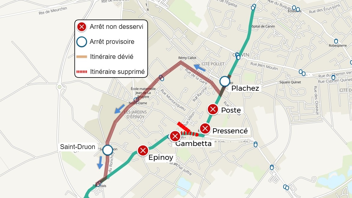 | L'arrêt Marronniers est déplacé à l'arrêt PROVISOIRE 68 rue du Général de Mitry | |