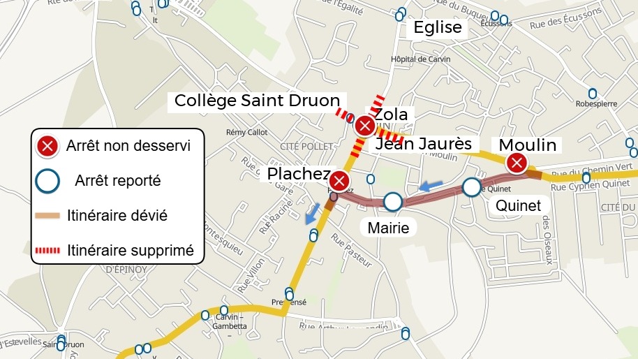 | L'arrêt Collège Saint Druon est déplacé à l'arrêt Marché (rue V. Hugo) | |