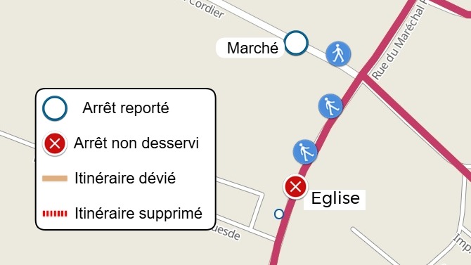 | L'arrêt Eglise est déplacé à l'arrêt Marché situé rue Cordier |