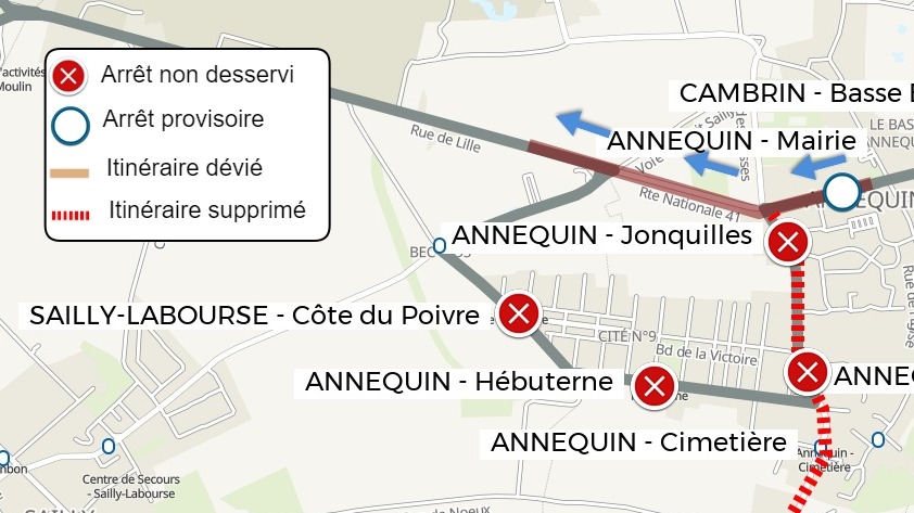 56 L'arrêt SAILLY-LABOURSE - Côte du Poivre est reporté à l'arrêt ANNEQUIN - Mairie