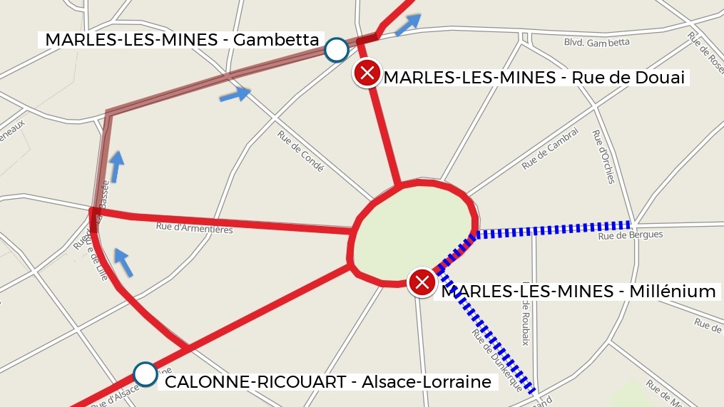 | L'arrêt CAMBRIN - Basse Boulogne est déplacé à l'arrêt PROVISOIRE rue de Noyelles | |