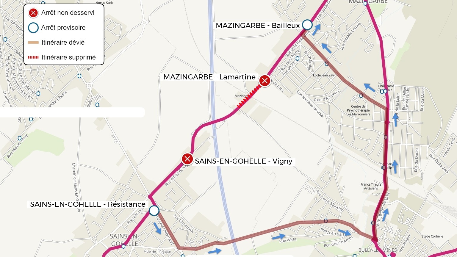 | L'arrêt MAZINGARBE - Lamartine est reporté à l'arrêt MAZINGARBE - Bailleux | |