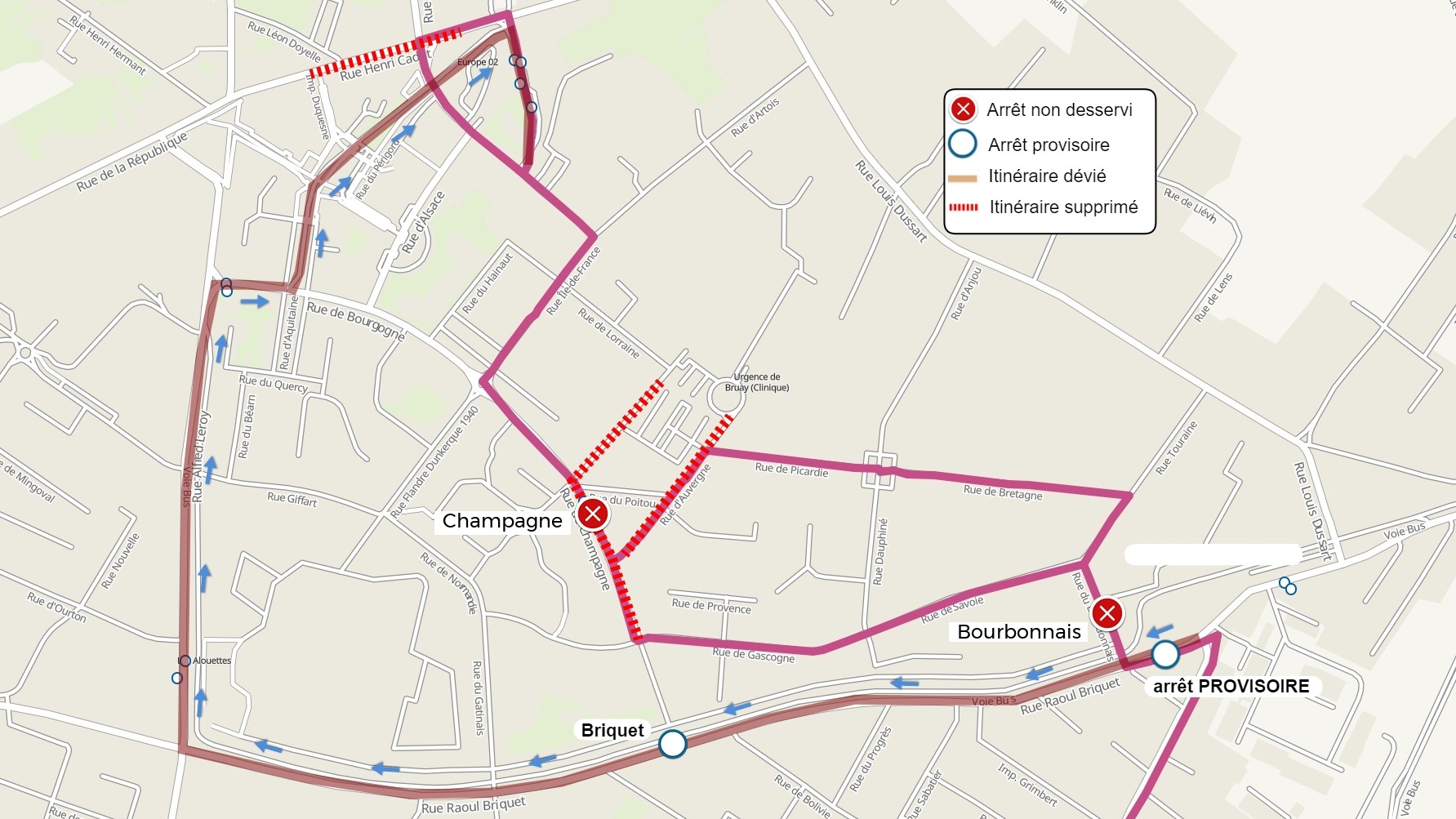 | L'arrêt Stade Léo Lagrange est reporté à l'arrêt Centre des Impôts | |