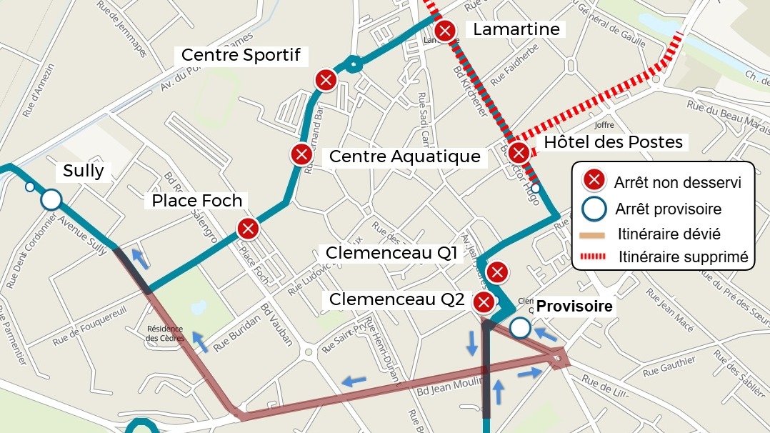 | L'arrêt Place Foch est reporté à l'arrêt Sully | |
